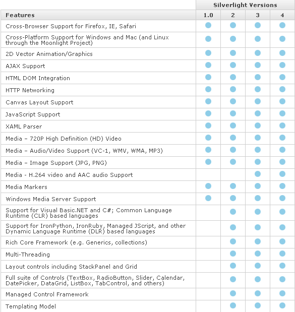 Silverlight 4 - Final version released in Apr 2010