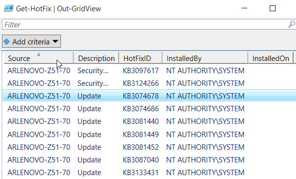 value of the ComputerName property for each row.