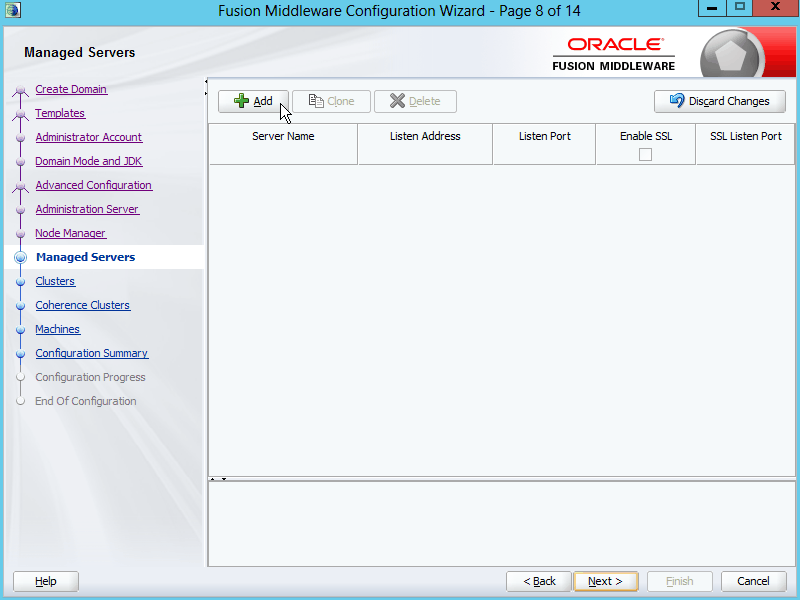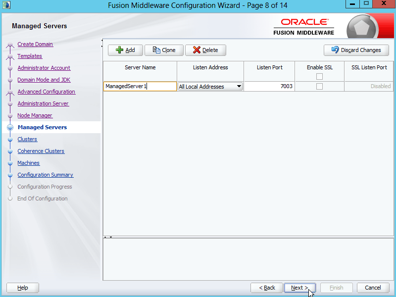 Fig. 029 Enter the Server Name, Listen Address and Listen Port for the managed server to be created. Click Next