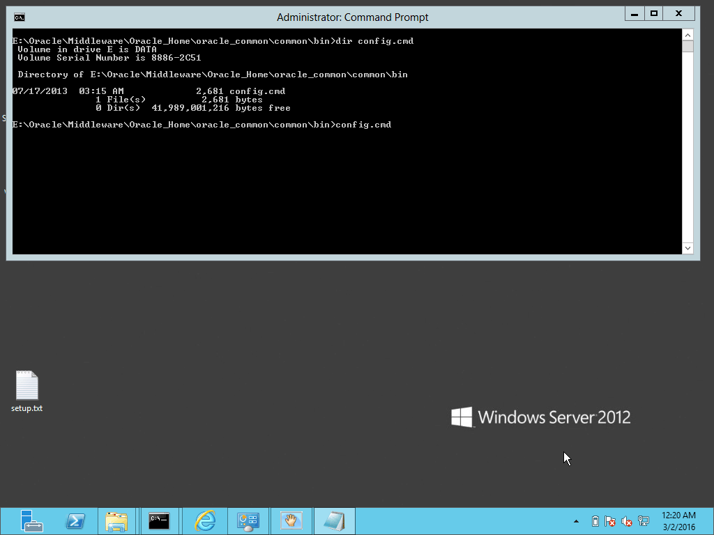 Fig. 019 If configuration wizard was not launched after installation, launch it by running config.cmd from %ORACLE_HOME%\oracle_common\common\bin directory