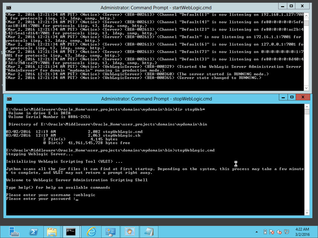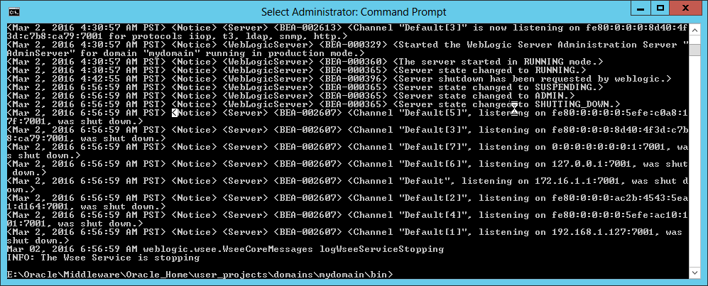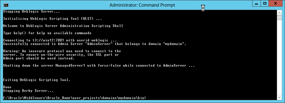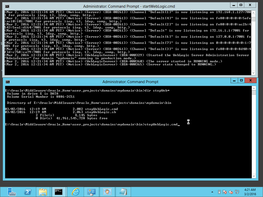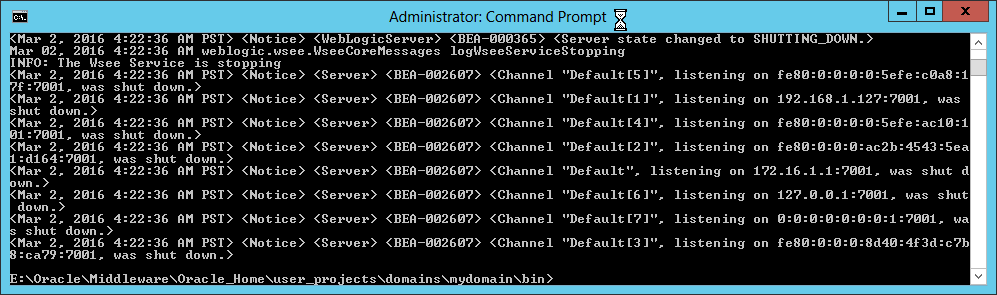 Fig. 041 Stop the Administration Server by running stopWebLogic.cmd or simply hitting Ctrl-C on the running server's console.