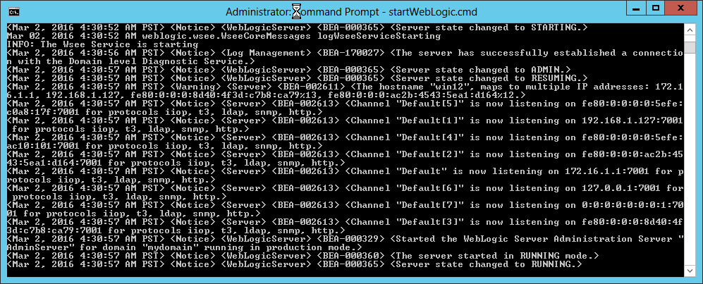Fig. 040 Wait until the Administration Server has started up completely and enters RUNNING state.