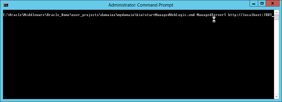 Fig. 056 Return to the domain bin directory and start the Managed server again by typing startManagedWebLogic Managed1 http://localhost:7001