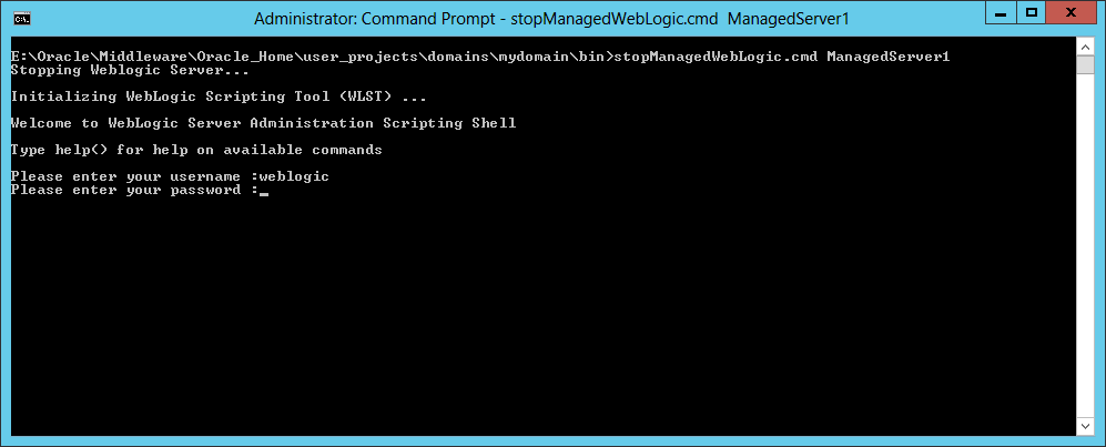Fig. 042 If you used stopWebLogic.cmd script, you will need to enter the username and password to complete the action