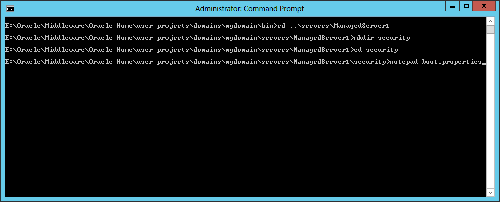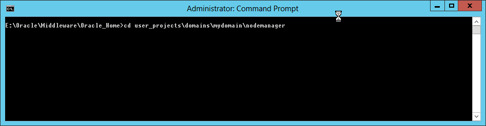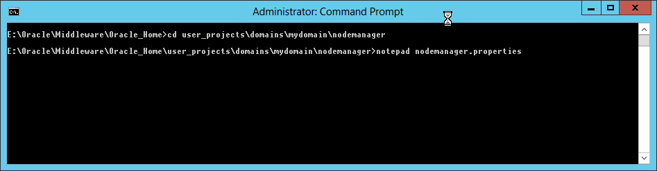 Fig. 074 Go to the domain's node manager directory e.g. from the oracle_home, cd user_projects\mydomain\nodemanager