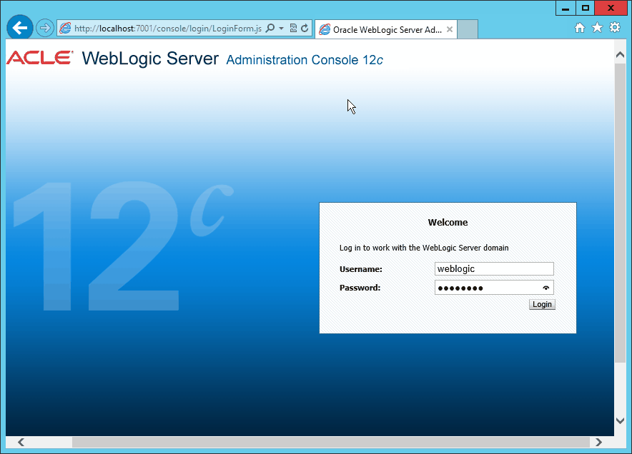 Fig. 072 Open a web browser and load the admin console http://localhost:7001/console. login as the admin user