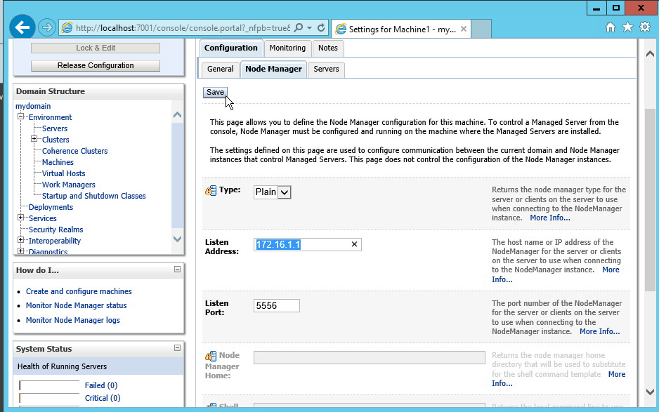 Fig. 088 Change Listen Address and replace localhost with actual IP address. It should be from one of the IP address that the admin server instance can connect to the node manager service.