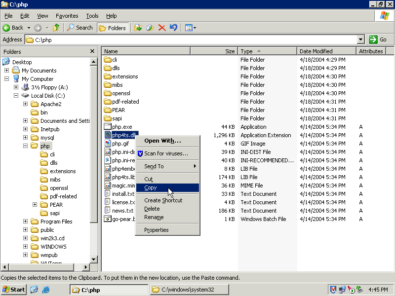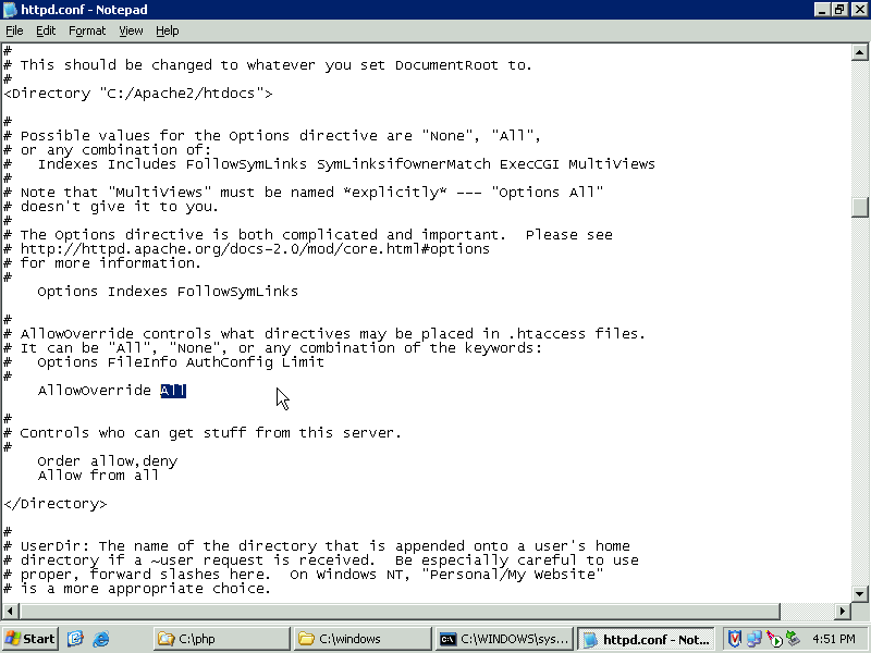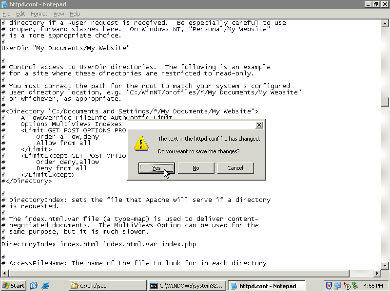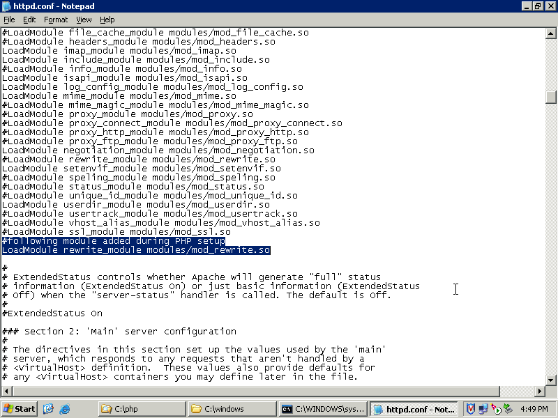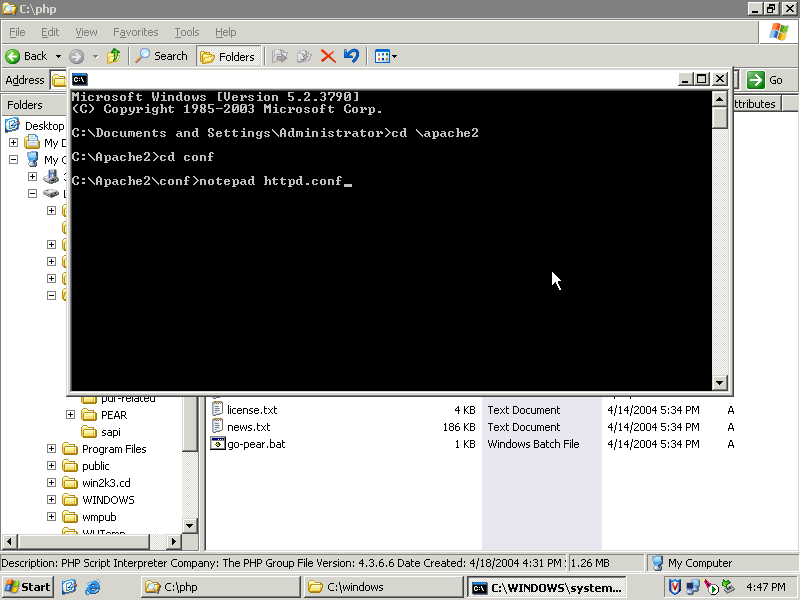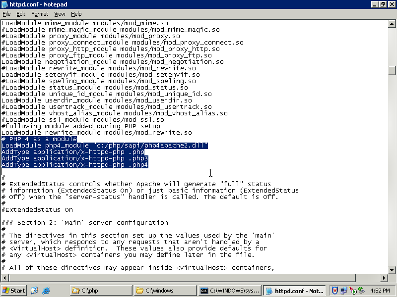 Web::Development::PHP:: How to install PHP support for Apache on Windows platform