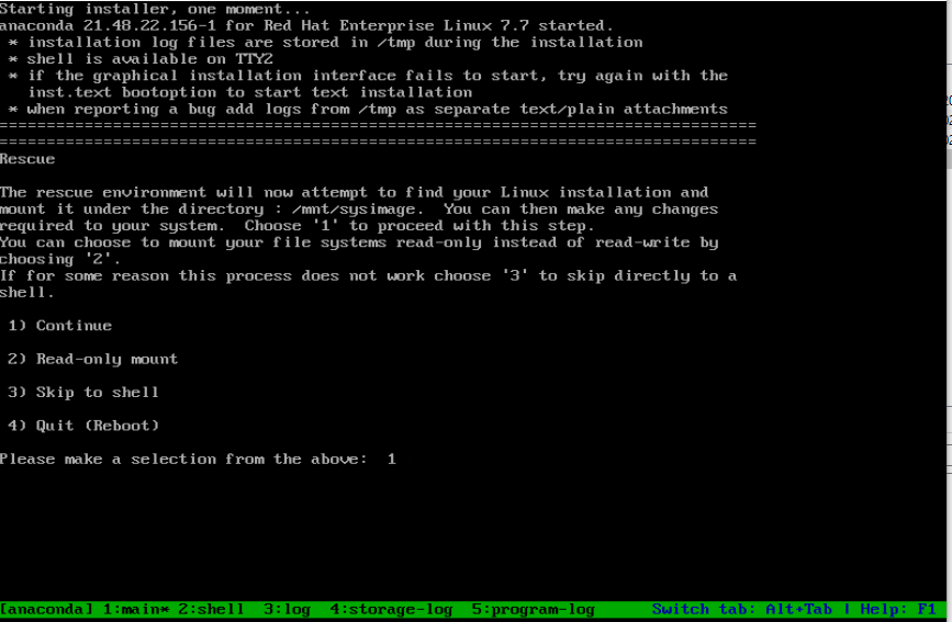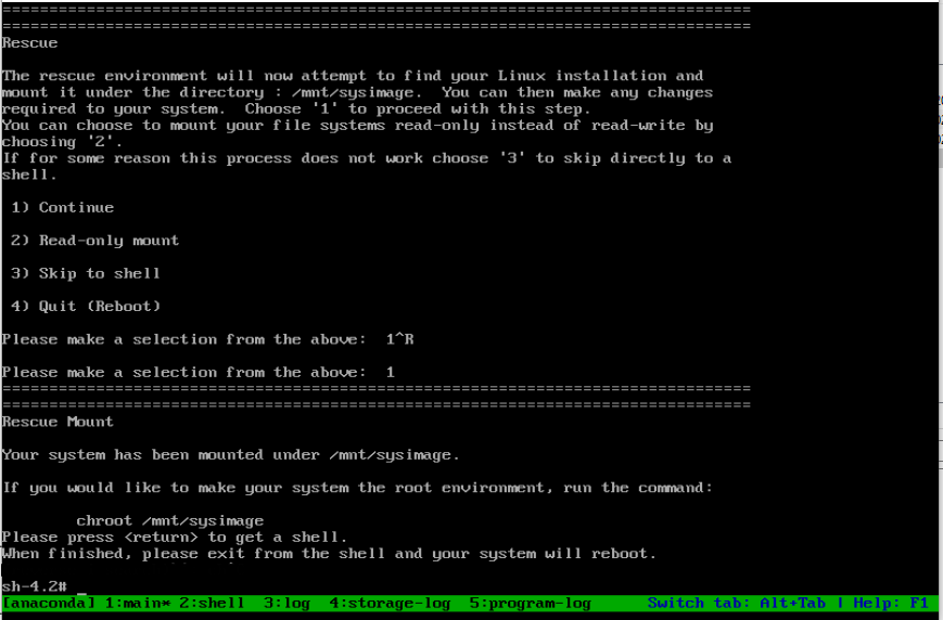 ## The system's root filesystem is not mounted as /mnt/sysimage and you will be presented with the following prompt