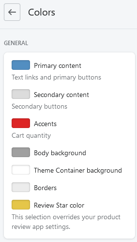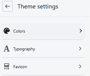 You can choose from various theme settings type such as Color, Typography etc.